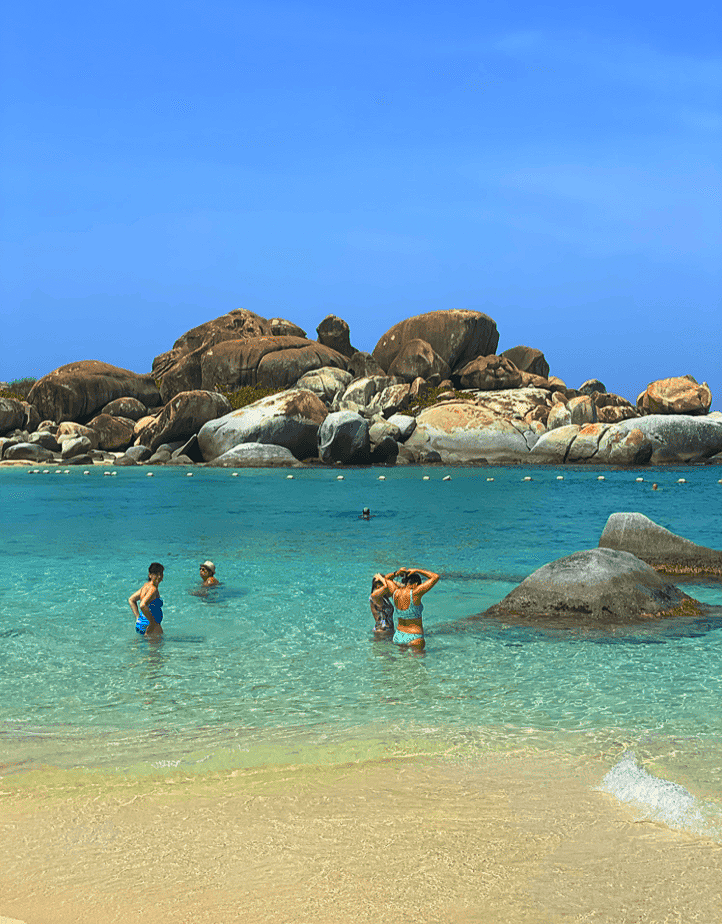 When you get to Devil's Bay, the stunning beach at the end of the rocks, the water is perfect for