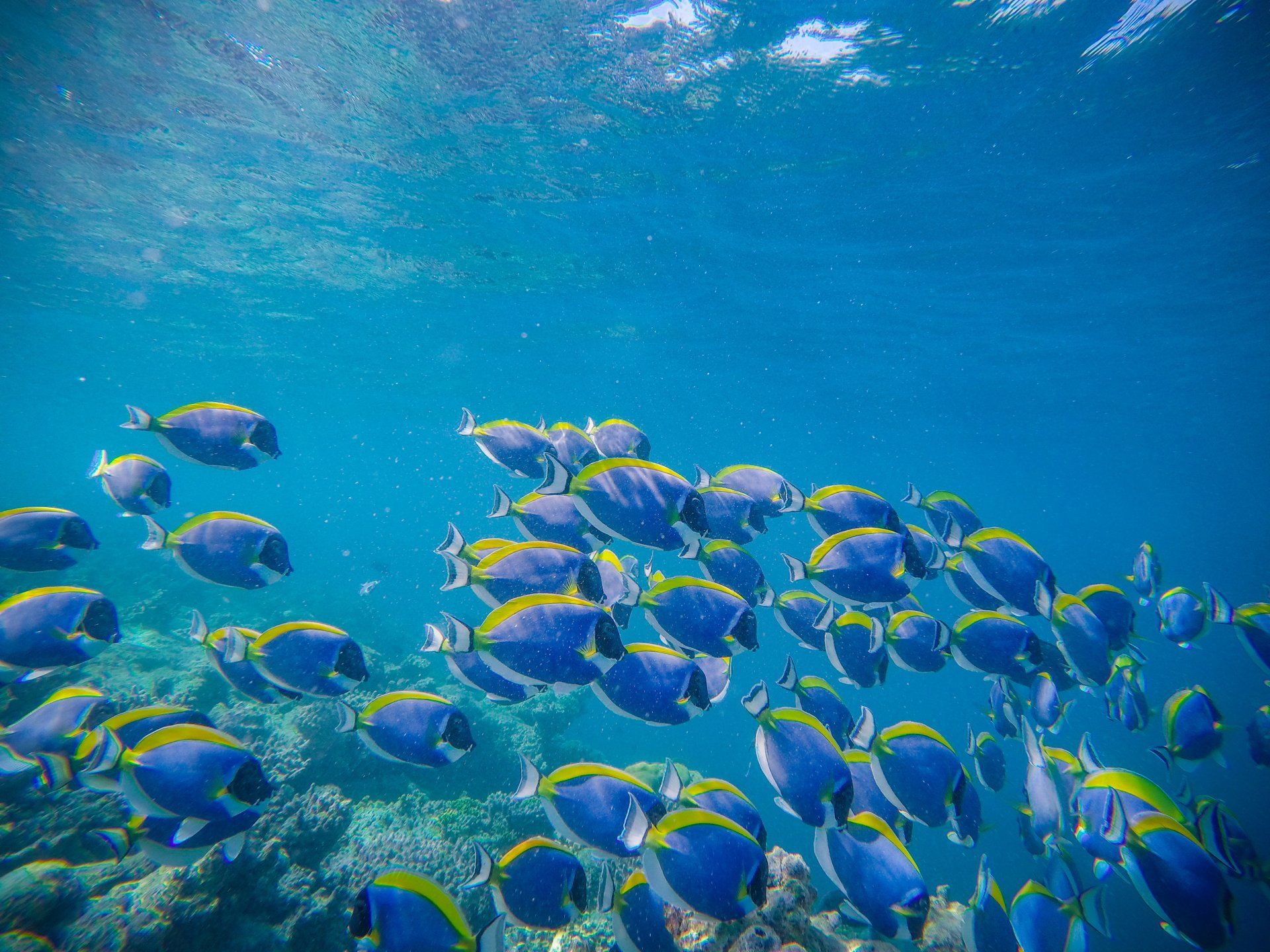 fish, file fish, butterfly fish, schools of blue tang, clownfish, blueheads, butterfly fish, snapper,
